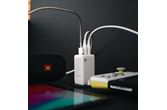 Lad opptil tre enheter samtidig. Hvis den bærbare datamaskinen din støtter hurtiglading, lar denne laderen deg spare plass sammenlignet med vanlige bærbare adaptere.