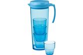 Smart oppbevaring med plassering av glassene i muggen når den ikke er i bruk. Svært praktisk på reiser med mindre skapplass