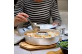 Et pent og praktisk underlag tilpasset Omnia-formen. Merk at den rustfrie underdelen ikke må stå på underlaget.