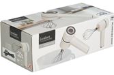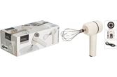 Den har 3 hastighetsnivåer, er oppladbar via USB, og leveres med visp i rustfritt stål. Den stilrene designen i kremhvit med grå detaljer gjør at den passer rett inn på kjøkkenbenken, i bobilen eller på hytta.