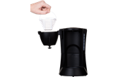 Kaffemaskinen har et moderne utseende med sitt svarte hus og er utstyrt med en vannstandsindikator, varmeplate, Anti-drypp system, beskyttelse mot tørrkoking og automatisk avstenging når kaffen er klar. Kaffetrakteren har en effekt på 600 W og er derfor ideell for camping.