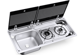 Produktbeskrivelse Koketopp med to gassbluss kombinert med oppvaskkum, med glassdeksel – 760 x 325 mm