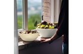 Den med hensikt ujevn sirkulære dekorasjonen gir et påfallende håndlaget utseende. Et nøye utvalg av farger inspirert av jordens og naturens nyanser understreker denne samlingens naturvennlige overtoner ytterligere.
