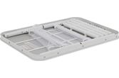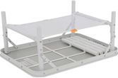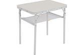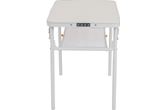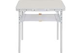Et stilig aluminiumsbord med en lys bordplate i tre-look fra pastellkolleksjonen. Ved hjelp av settskruene kan bordbena justeres til å stå på en ujevn overflate. I tillegg er bordet svært kompakt på grunn av de avtakbare bena. Bordet er utstyrt med et nett under MDF-bordplaten for oppbevaring av gjenstander, og et håndtak som gjør bordet lett å bære. Bordet er justerbart i høyden: 25/60 cm.
