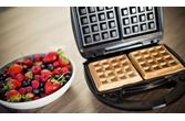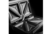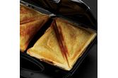 Smørbrødgrill med 3 forskjellige utskiftbare steke-plater. Børstet rustfritt stål og svarte lakkerte områder. Jernet kan lagres og settes bort stående. Smørbrød-, belgisk vaffel- og grill-jern. Utskiftbare stekeplater som kan vaskes i oppvaskmaskin.