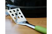 Vinklet form og ideell lengde for enkelt arbeid på og ved siden av grillen. Bred, solid vender med firkantede kanter, ideell for et hvert grillselskap.